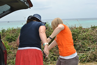 We had to trek through this tall grass and again the Habu snake was on everyone's minds. Sarah was in front of me, kind of funny, she was shaking her keys trying to scare off any snakes. Hilarious.